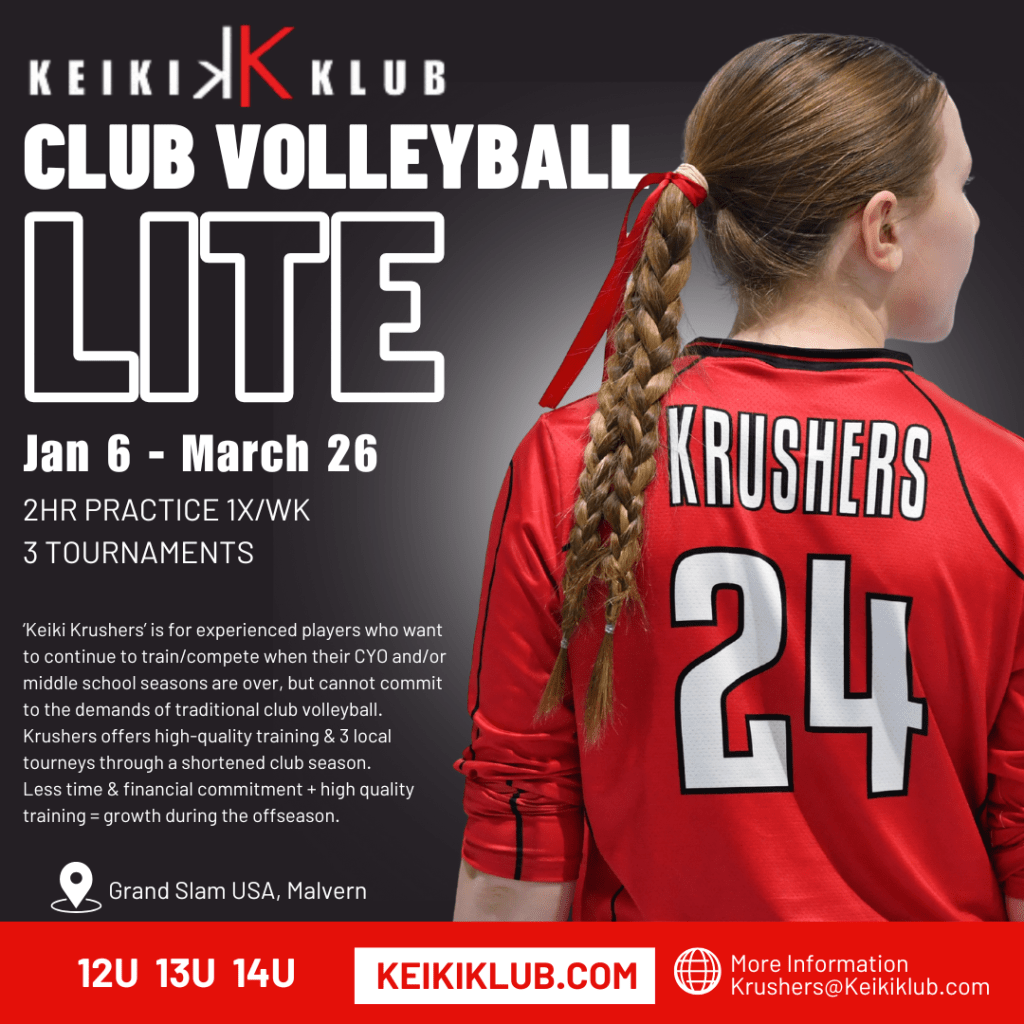 Keiki Klub offers high-quality youth volleyball programs for kids, tweens, and teens in grades K-12 in West Chester, Glen Mills, Malvern, and the surrounding areas. We welcome all keiki with open arms, regardless of their experience level. Our programs are designed to be both fun and challenging, fostering a positive environment that helps your keiki improve their athletic goals and develop a love for the sport.